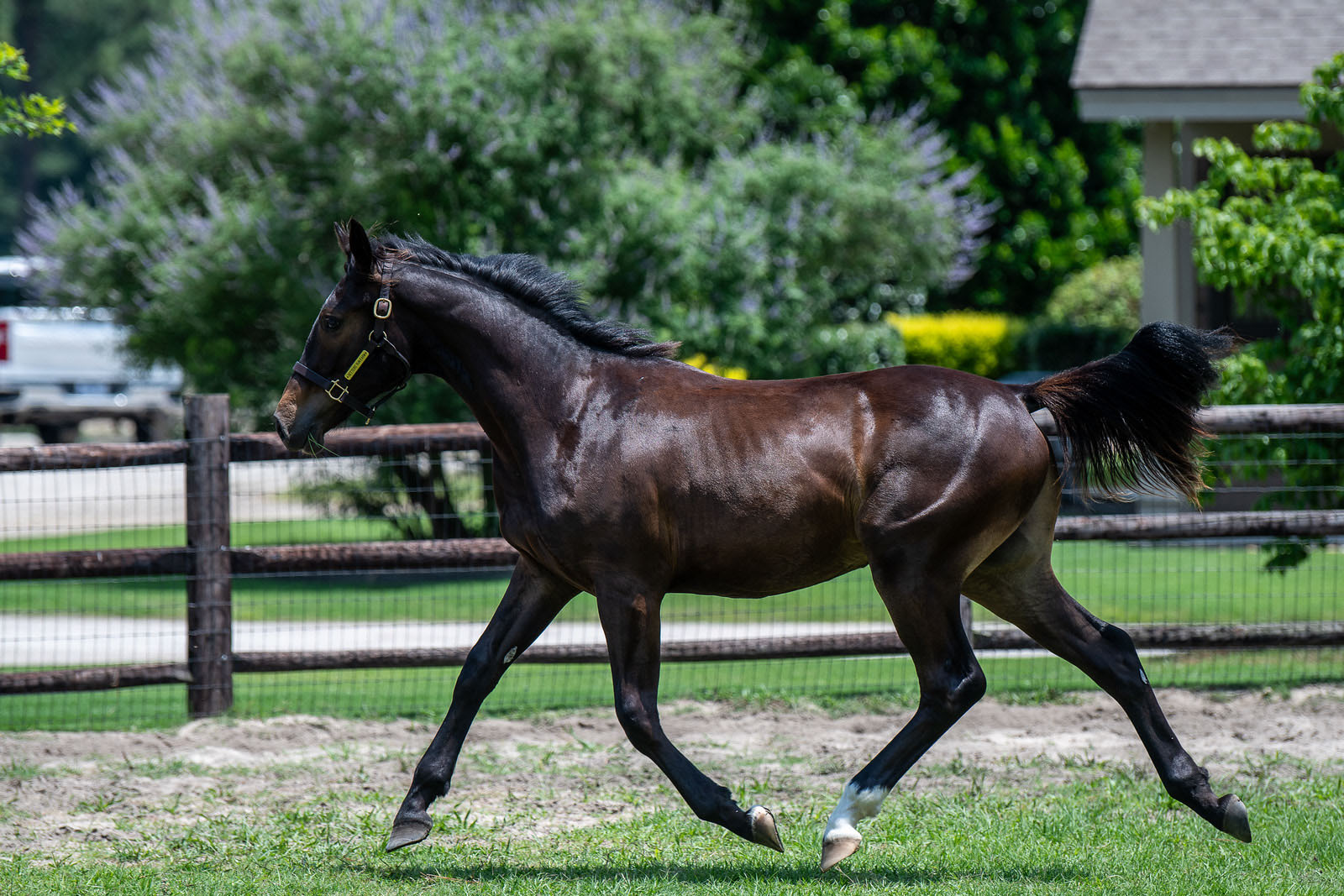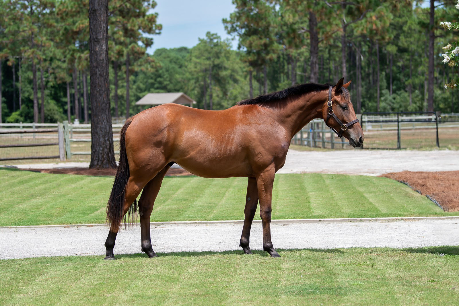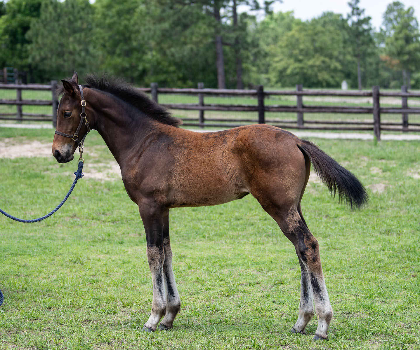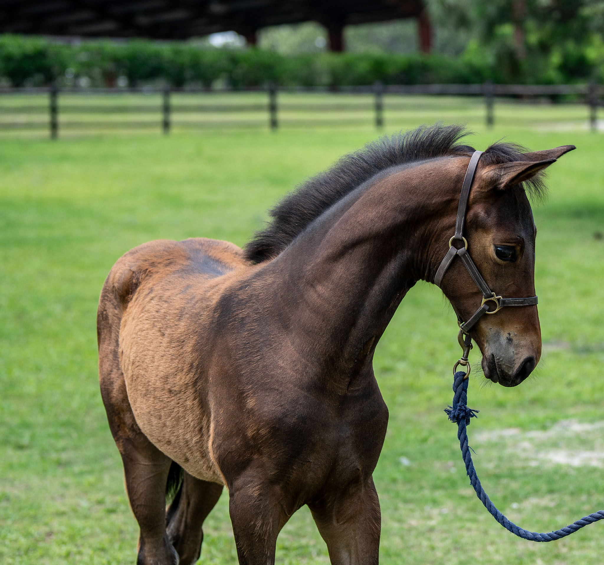 Nicely shows off quality movement and athleticism that would fit any discipline! He has a kind temperament and is very willing to please. Nicely has started some light ground work and has had extensive handling. He stands well for the farrier, vet, crossties- loves to be groomed and vacuumed.